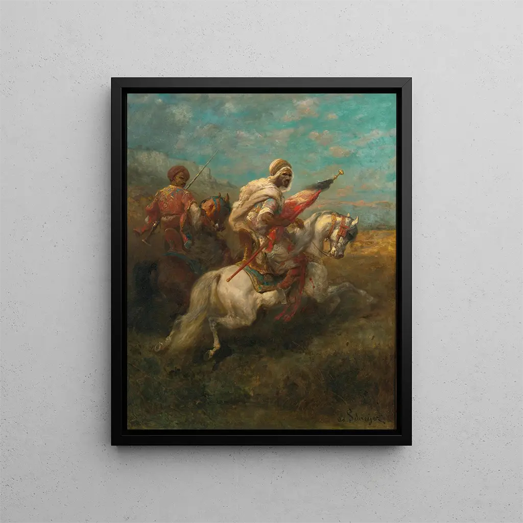 L maleri "Deux éclaireurs à cheval" af Adolf Schreyer er et fascinerende værk, der transporterer seeren til en verden, hvor den vilde natur møder rytternes heroisme. Dette værk, emblematiserende for den romantiske strømning, fremkalder ikke kun skønheden i landskabet, men også modet hos de personer, der bor i det. Gennem en dynamisk komposition og en rig farvepalette formår Schreyer at fange selve essensen af eventyret og opdagelsen, og inviterer hver enkelt til at forestille sig selv ved siden af disse éclaireurs i en episk søgen.