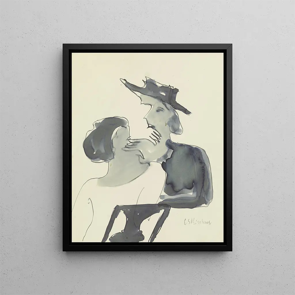 Kunsttryk Deux kvinder, der taler - Ernst Ludwig Kirchner – Indledende fascinerende I den livlige verden af tysk ekspressionisme skiller værket "To kvinder, der taler" af Ernst Ludwig Kirchner sig ud med sin dristighed og følelsesmæssige dybde. Malet i begyndelsen af det 20. århundrede, skildrer dette slående lærred et øjeblik af intimitet mellem to kvindelige figurer, der fanger ikke kun deres dialog, men også selve essensen af tiden. Kirchner, grundlægger af gruppen Die Brücke, formåede at overskride de kunstneriske konventioner i sin tid for at tilbyde en personlig og foruroligende vision af det moderne liv. Kunsttrykket af dette ikoniske værk giver mulighed for at værdsætte rigdommen i dets farver og styrken i dets former, samtidig med at det inviterer til refleksion over menneskelige relationer og samfundet. Stil og værkets særpræg Kirchners stil karakteriseres ved en dristig palette og udtryksfulde penselstrøg, der tilfører en særlig dynamik til hans kompositioner. I "To kvinder, der taler" skaber de levende og kontrasterende farver samt de stiliserede former en atmosfære, der er både intim og foruroligende. Figurerne, selvom de er forenklede, har en mærkbar tilstedeværelse, som om de er på nippet til at træde ud af lærredet for direkte at henvende sig til betragteren. Kirchner bruger vinklede linjer og forvrængede former for at udtrykke de komplekse følelser hos personerne, hvilket afslører de underliggende spændinger i deres interaktion. Dette værk er en sand udforskning af den menneskelige psykologi, hvor hver detalje betyder noget, og hvor hver farve fremkalder en bestemt fornemmelse. Kunstneren og hans indflydelse Ernst Ludwig Kirchner, født i 1880, var en af de førende repræsentanter for ekspressionismen. Hans værk er præget af et ønske om at fange moderniteten i sin tid, samtidig med at han modsatte sig de akademiske konventioner. Kirchner blev dybt påvirket af afrikanske og oceaniske kunstbevægelser, hvilket afspejles i hans dristige stilvalg og tilbagevendende temaer. Hans engagement i Berlins kunstliv samt hans oplevelse af Første Verdenskrig har formet hans syn på samfundet og dets skavanker. Som kunstner banede han vejen for nye former for udtryk, hvilket inspirerede mange generationer af kunstnere til at udforske mere personlige og følelsesmæssige emner. Hans arv