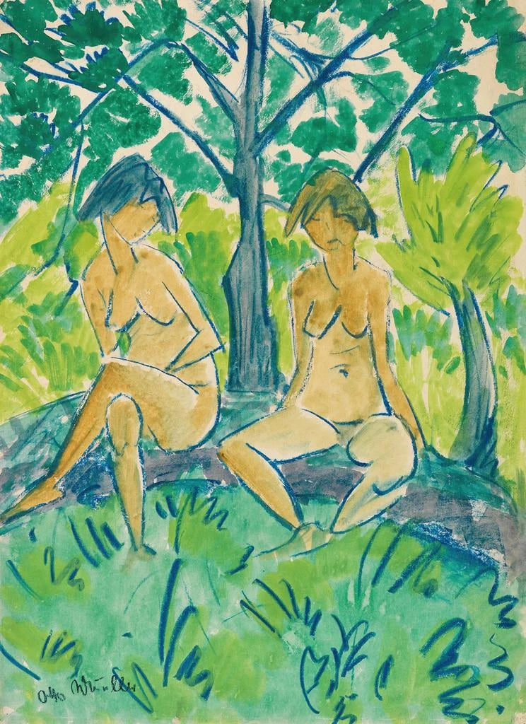 Kunsttryk | To unge pigers nøgne kroppe - Otto Mueller