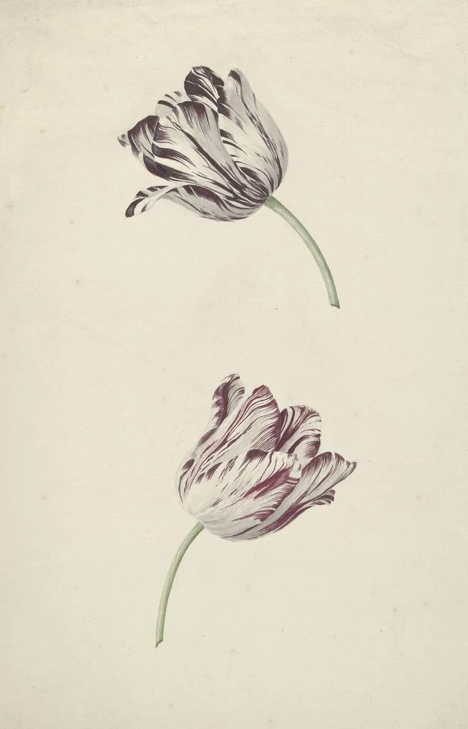 Kunsttryk | To hvide og røde tulipaner - Jan Jansz van der Vinne