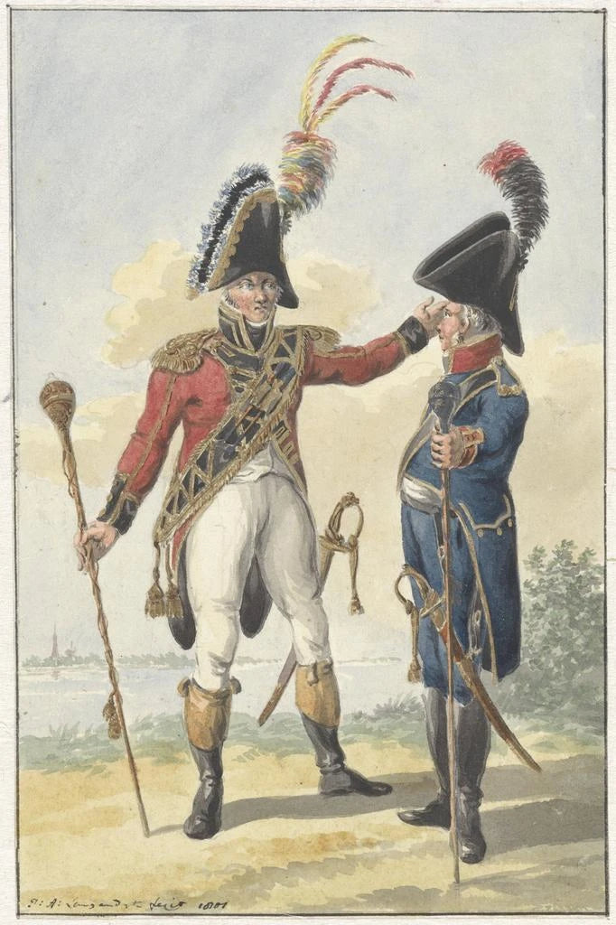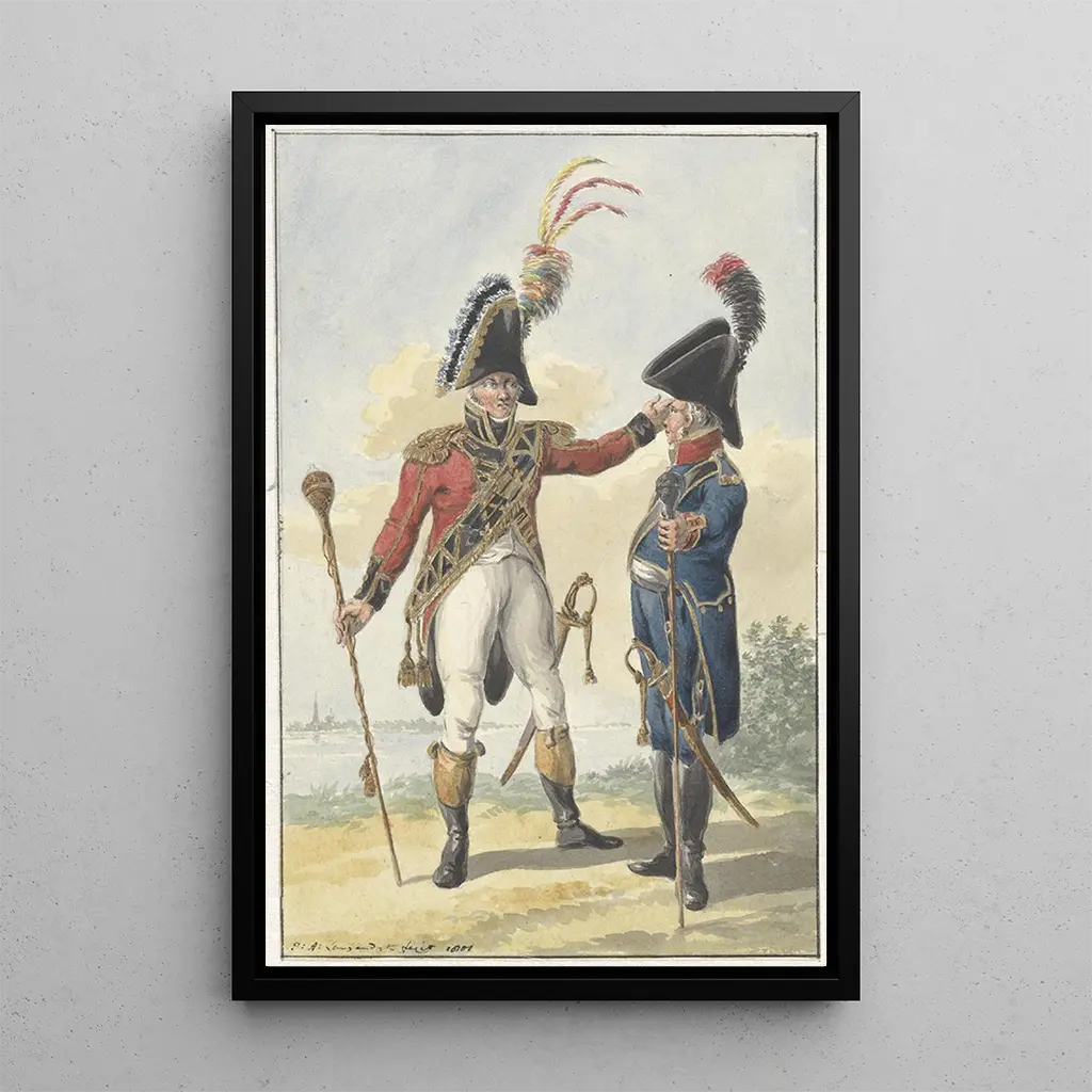 Kunsttryk | To officerer stående - Jan Anthonie Langendijk