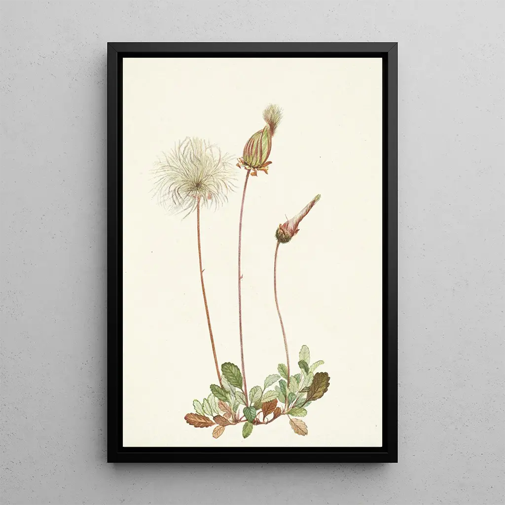 Kunsttrykket af Fruit af den gule dryade, eller Dryas drummondii, giver os en fascinerende vision af naturen. De gyldne nuancer og de delikate teksturer af frugterne er kyndigt fanget, hvilket afslører den iboende skønhed i denne plante. Mary Vaux Walcott formår gennem sit talent at formidle essensen af denne art, hvilket fremkalder en atmosfære af ro og forbindelse med den naturlige verden. Værket inviterer til en visuel udforskning, hvor hver detalje fortæller en historie, nemlig en natur, der er både skrøbelig og modstandsdygtig.