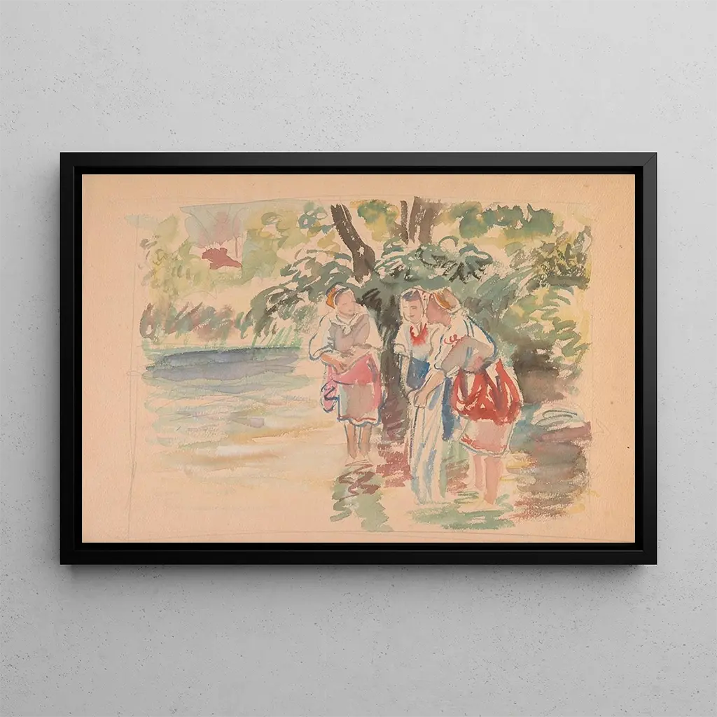 Dette kunsttryk af værket "Tre kvinder, der går i floden" er et ideelt dekorativt valg til forskellige opholdsrum. Uanset om det er i en stue, et kontor eller et soveværelse, tilføjer dette lærred et strejf af ro og friskhed til dit hjem. Dets trykkvalitet sikrer en bemærkelsesværdig trofasthed over for farver og detaljer i det originale værk, samtidig med at det tilbyder en uomtvistelig æstetisk appel. Ved at integrere dette kunstværk i din indretning skaber du en beroligende og inspirerende atmosfære, der fremmer afslapning og eftertanke.