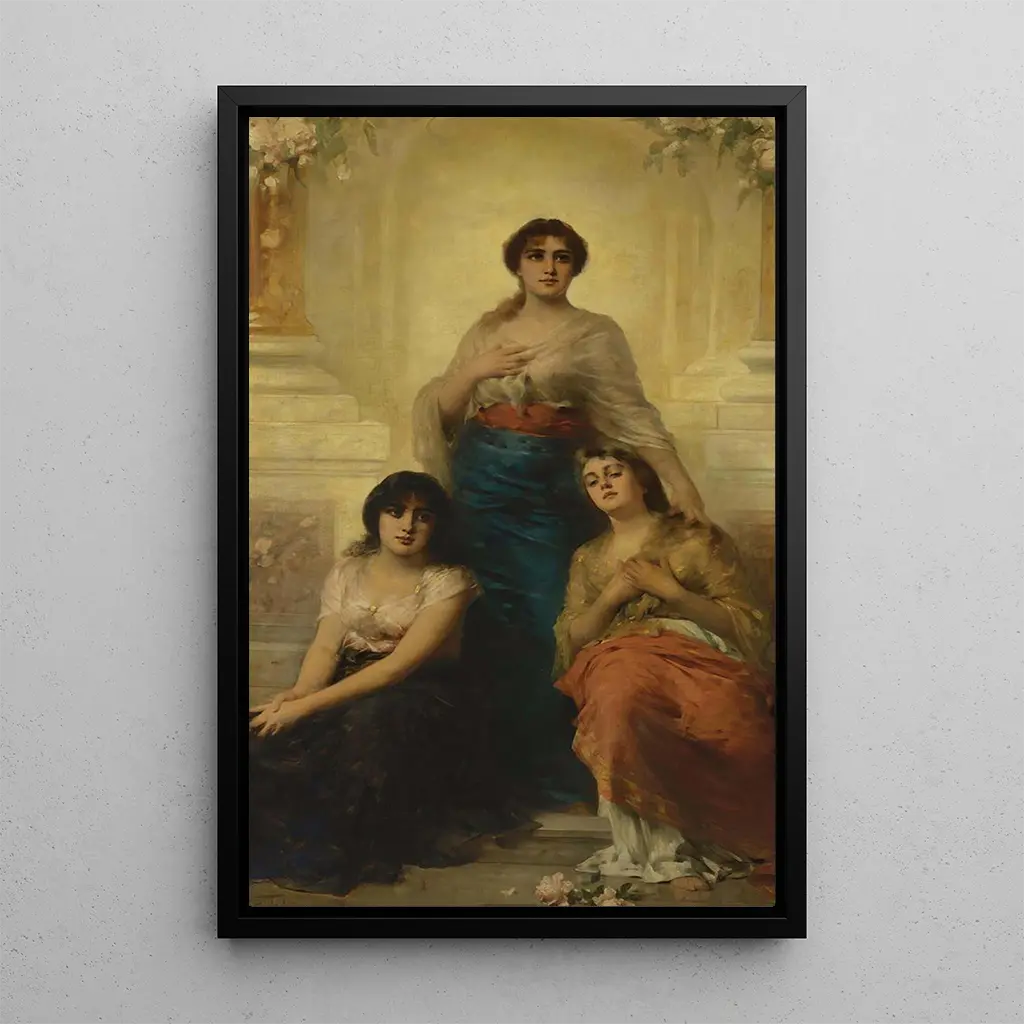 Maleri Tre skønheder - Nathaniel Sichel | Kunsttryk Source: Tableau Trois beautés - Nathaniel Sichel | Reproduction