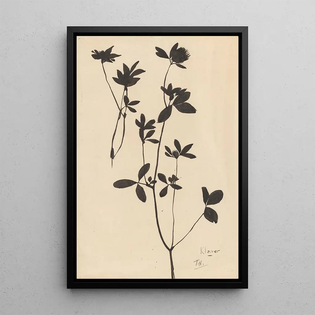 Det kunsttryk "Trèfle" af Theo Nieuwenhuis er en hyldest til den diskrete skønhed i floraen. Dette værk fremhæver et trøffel, symbol på held og velstand, som stolt står midt i en delikat baggrund. Nuancerne af grøn og hvid, subtilt bearbejdet, fremkalder en fredelig og forfriskende atmosfære. Nieuwenhuis' teknik, der blander realisme og stilisering, gør det muligt at værdsætte hver detalje af planten, fra de delikate blade til de blomstrende blomster, hvilket skaber en intim forbindelse med naturen.