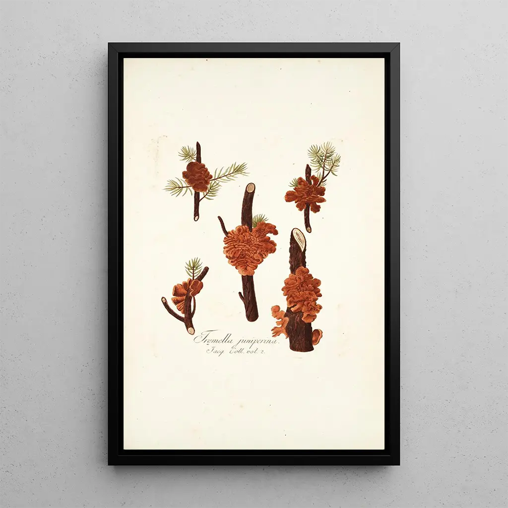Kunsttrykket af Tremella juniperina er et dekorativt stykke, der vil finde sin plads i forskellige rum, uanset om det er i en stue, et kontor eller et soveværelse. Det trykteknikkens kvalitet sikrer en trofast gengivelse af farver og detaljer fra det originale værk, hvilket giver en æstetisk tiltrækning, der ikke kan ignoreres. Dette lærred bringer et strejf af natur ind i dit hjem og vækker samtidig samtaler om skønheden i svampe og biodiversitetens rigdom. Ved at vælge dette lærred vælger du en elegant og berigende dekoration, der vil vække dine gæsters nysgerrighed.