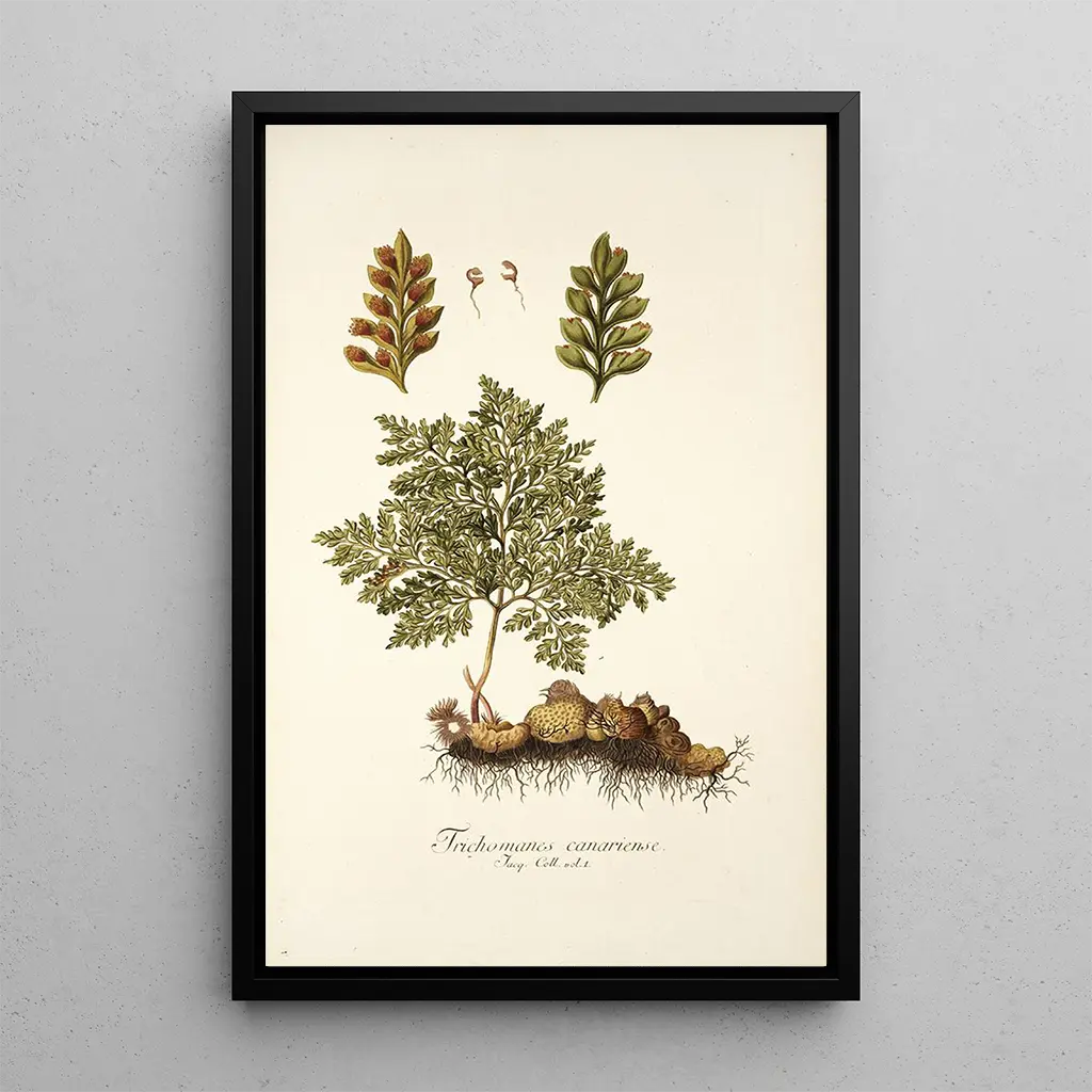 Kunsttrykket af Trichomanes canariense er et ideelt dekorativt stykke til at tilføre natur til dit hjem. Uanset om det er i stuen, på kontoret eller i soveværelset, fremkalder dette billede ro og skønhed i den planteverden. Dets trykkvalitet og farvernes trofasthed gør det til et attraktivt valg for kunst- og botanikentusiaster. Ved at integrere dette lærred i din indretning giver du dit rum en beroligende og inspirerende atmosfære, samtidig med at du fejrer biodiversitetens rigdom.