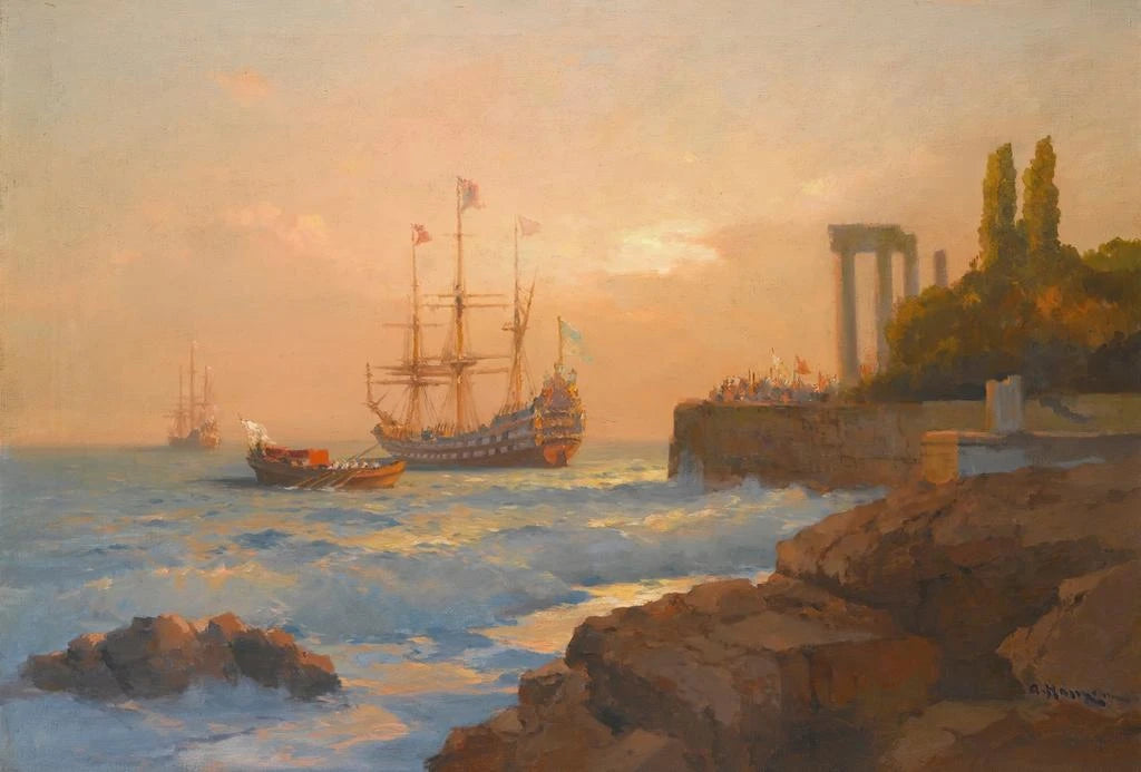 Triumferende skib nærmer sig havnen - Alexei Vasilievich Hanzen