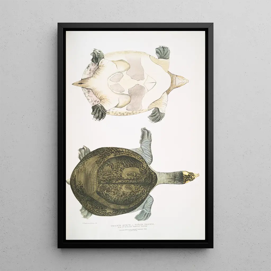 John Edward Gray, britisk naturforsker og zoolog, fra det XIX århundre, spilte en avgjørende rolle i dokumentasjonen av verdens fauna. Hans verk, ofte laget for vitenskapelige publikasjoner, kombinerer presisjon og estetikk. Påvirket av oppdagelsene i sin tid, bidro Gray til klassifiseringen av mange arter, og ble en ikonisk figur innen zoologisk illustrasjon. Hans stil, både realistisk og kunstnerisk, markerte en epoke hvor vitenskap og kunst møttes for å utdanne publikum om biologisk mangfold. Kunsttrykket Trionyx Hurum Trionyx Hurum er et perfekt eksempel på hans innovative tilnærming.