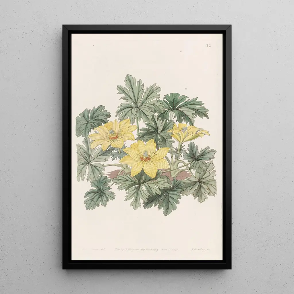 Kunsttrykket "Trolle uden stængel" af Sydenham Edwards er et delikat værk, der fremhæver den subtile skønhed af en ofte ukendt plante. Nuancerne af grønt og hvidt smelter blidt sammen, hvilket skaber en beroligende og fredelig atmosfære. Akvarelteknikken, mestret af Edwards, gør det muligt at fange de fine detaljer i blade og blomster, hvilket bringer denne botaniske repræsentation til live. Værket inviterer til en rolig eftertanke og afslører naturens ynde og elegance i al sin pragt.