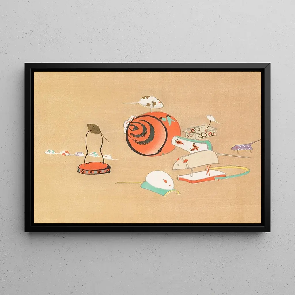 Kunsttrykket Mille herbes Pl23 af Kamisaka Sekka tager os med ind i en blomsterverden, hvor hver detalje er en invitation til forundring. De livlige farver, der spænder fra dybe grønne til strålende gule, blander sig harmonisk for at skabe en atmosfære, der både er beroligende og dynamisk. Teknikken med ukiyo-e, karakteristisk for japansk kunst, gør det muligt at gengive teksturerne af planterne med bemærkelsesværdig præcision. Dette værk, både delikat og rigt, fremkalder naturens flygtige skønhed og fanger et øjeblik, der synes ophængt i tiden.