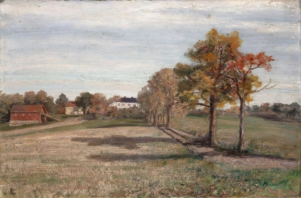 « Manoir à l'extérieur de Holmestrand » de Frederik Collett est une œuvre qui évoque la tranquillité de la campagne norvégienne. Les teintes douces de vert et de beige se mêlent pour créer un paysage serein, où le manoir s'impose avec élégance au milieu de la nature environnante. La technique de Collett, qui combine le réalisme avec une touche romantique, permet de ressentir la chaleur du soleil sur cette scène idyllique. Les détails minutieux des arbres et des fleurs ajoutent une dimension vivante à cette toile, invitant le spectateur à s'immerger dans ce cadre paisible.