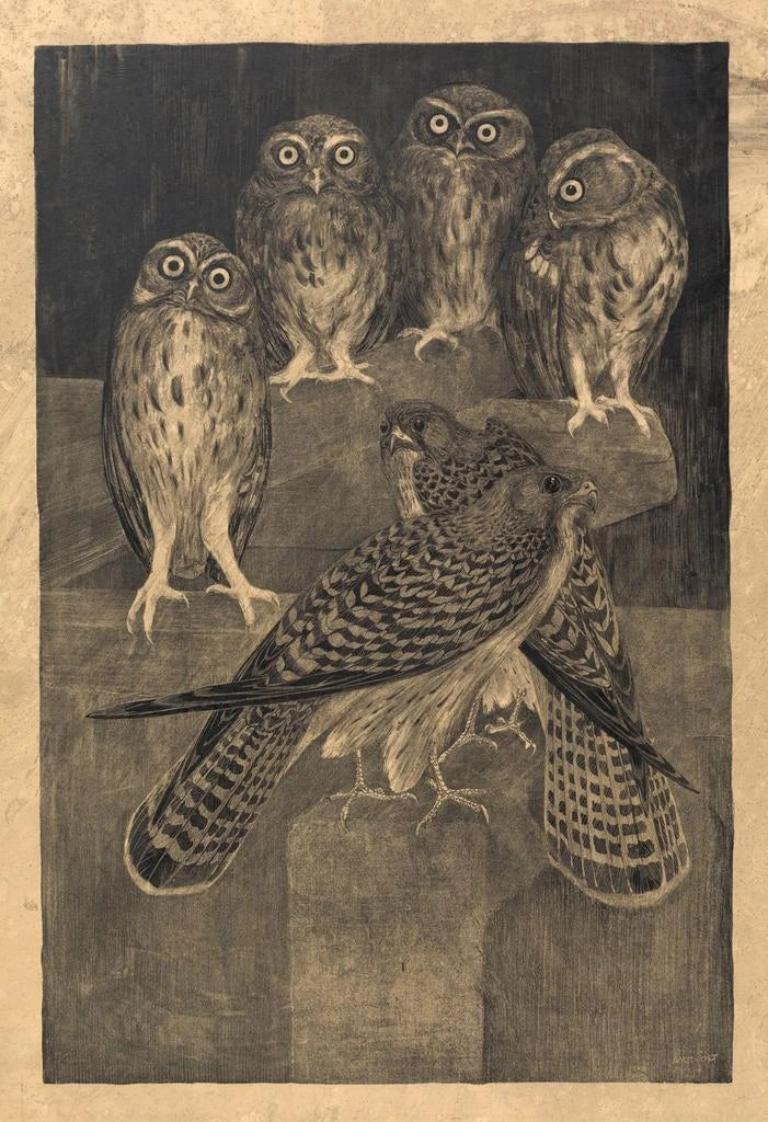 Kunsttryk | Uglehøge og tårnfalk - Theo van Hoytema