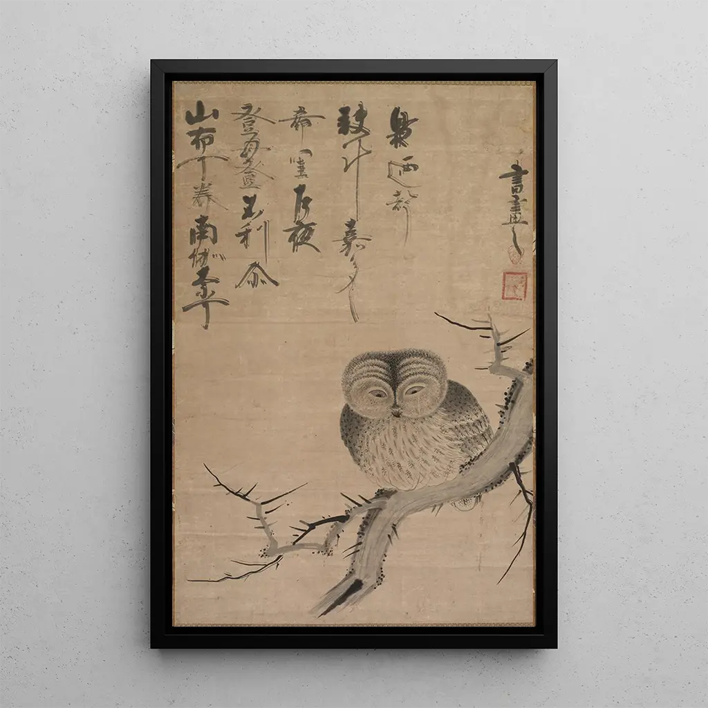 Kunsttrykket "Hibou" af Tsuda Bensaku fremkalder en mystisk og fortryllende atmosfære. Fremstillingen af denne natlige fugl, med dens delikate detaljerede fjer, synes at fange selve essensen af natten. Nuancerne af blå og sort blander sig harmonisk, hvilket skaber en slående kontrast til de lysglimt, der oplyser fuglens skarpe blik. Kunstnerens teknik, der kombinerer præcision og flydendehed, inviterer betragteren til at dykke ned i en verden, hvor naturen hersker, samtidig med at den vækker refleksion over den flygtige skønhed i det vilde liv.