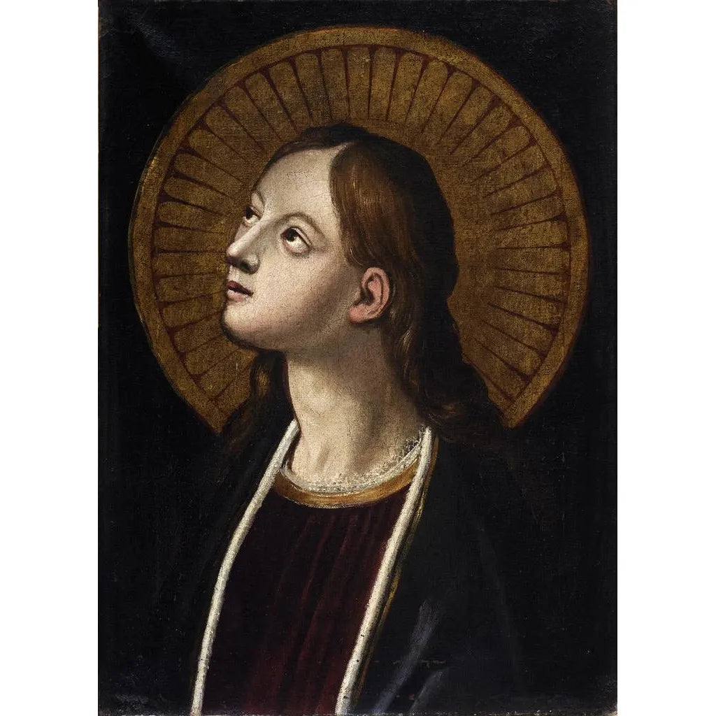 Den anonyme kunstner bag dette værk tilhører en tradition, der har præget historien om religiøs kunst, især i middelalderen og renæssancen. Disse kunstnere, ofte uden navn, spillede en central rolle i formidlingen af hellige fortællinger gennem kraftfulde billeder. Påvirket af deres tids religiøse overbevisninger formåede de at fange essensen af spiritualitet i deres værker. Kunsttrykket af Saint vidner om en tid, hvor kunst var et middel til kommunikation og hengivenhed, og afspejler samfundets åndelige aspirationer.