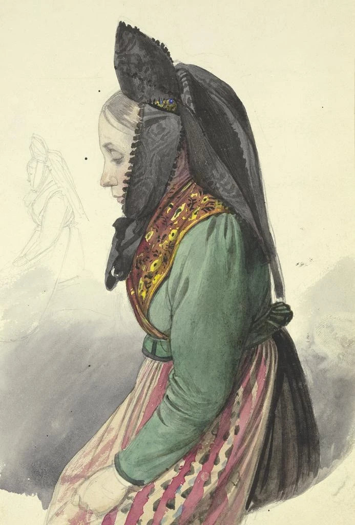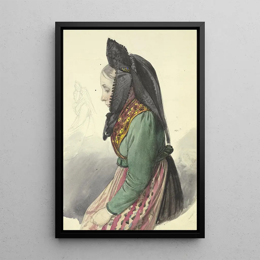 Maleri af en ung bondekone mod venstre - Jakob Becker | Kunsttryk