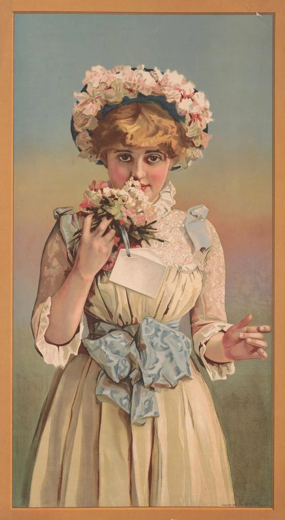 Maleri af en ung pige, der lugter en bluse - Gumpert Bros | Kunsttryk