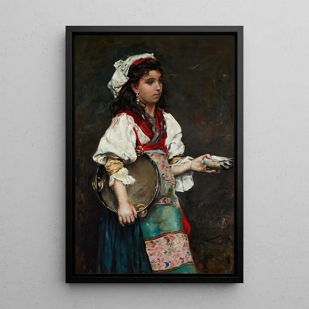 Kunsttrykket af lærredet "Jeune fille gitane" af Julius LeBlanc Stewart tager os med ind i en farverig og fængslende verden. Kompositionen fremhæver en ung kvinde, klædt i traditionelle beklædningsgenstande, hvis livlige farver fremkalder varme og energi fra gitansk kultur. Nuancerne af rød, blå og guld flettes harmonisk sammen, hvilket skaber en atmosfære, der både er festlig og melankolsk. Stewarts teknik, der kombinerer realisme og impressionisme, gør det muligt at fange ikke kun de fine træk af hans model, men også den følelse, der udstråler fra hendes blik. Dette kunsttryk inviterer til dyb refleksion og afslører den flygtige skønhed i ungdommen.
