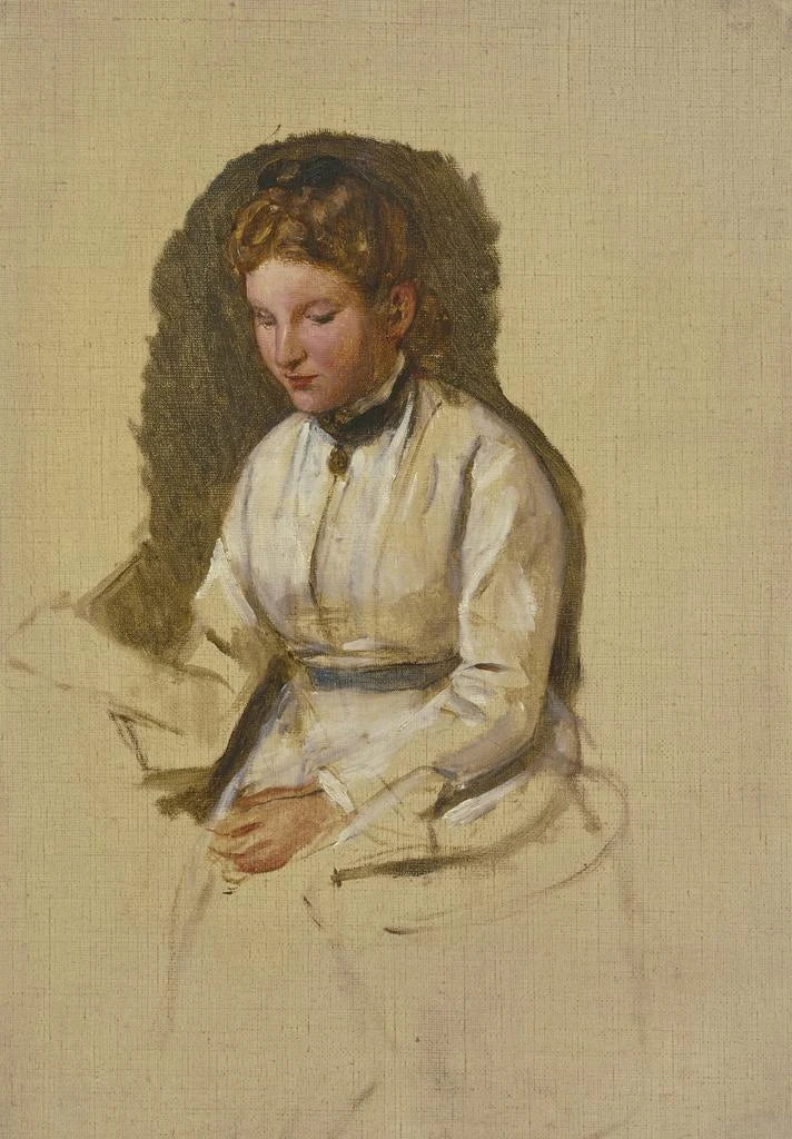 Maleri af ung pige i hvid bluse - Jakob Becker | Kunsttryk
