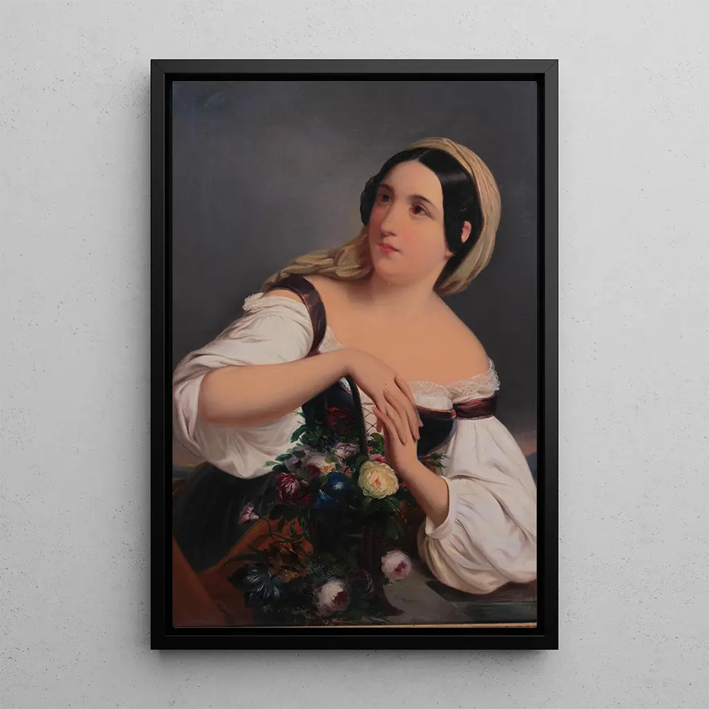 Kunsttryk af en ung pige med en blomsterkurv - Mihael Stroj | Kunsttryk