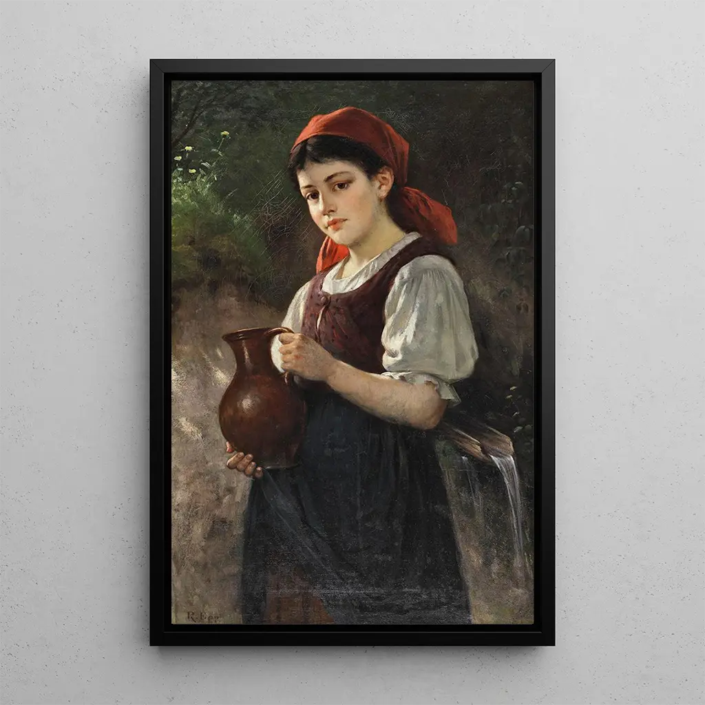 Kunsttryk af Rudolf Epp | Maleri af en ung pige med en lerkrukke