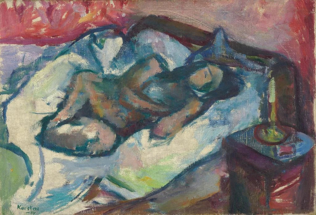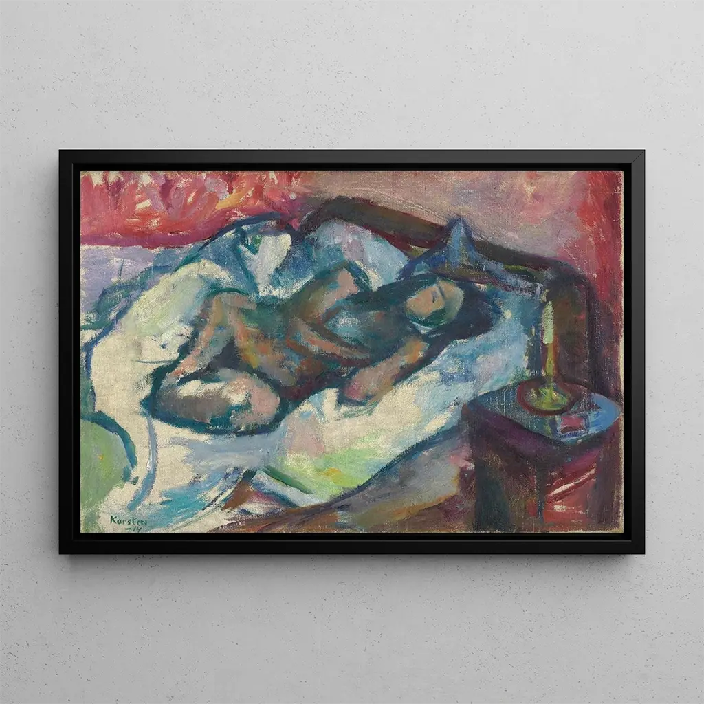 Kunsttryk | Ung pige nøgen i sengen - Ludvig Karsten