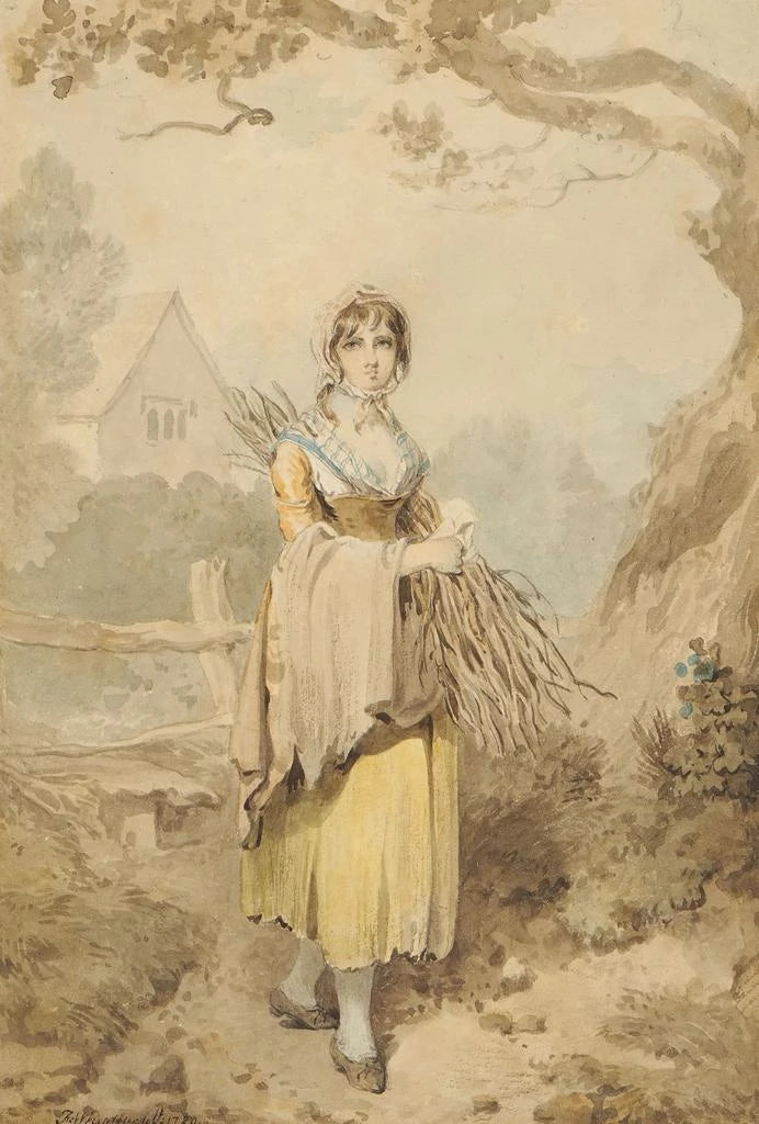 Maleri af en ung pige, der samler brænde - Francis Wheatley | Kunsttryk