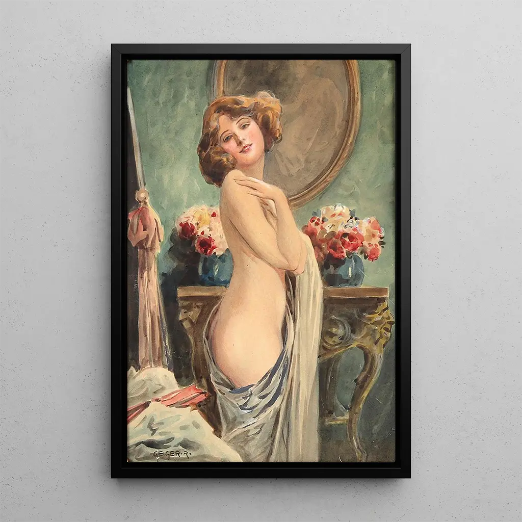Kunsttrykket af maleriet "Ung skønhed" er et ideelt dekorativt element til at tilføre elegance til dit hjem. Uanset om det er i en stue, et kontor eller et soveværelse, vil dette lærred appellere med sin tidløse skønhed. Dets trykkvalitet sikrer en trofast gengivelse af farver og detaljer fra det originale værk, samtidig med at det har en tydelig æstetisk appel. Ved at vælge dette kunsttryk vælger du et dekorativt element, der vil berige dit opholdsrum og samtidig fejre Richard Geigers kunst.