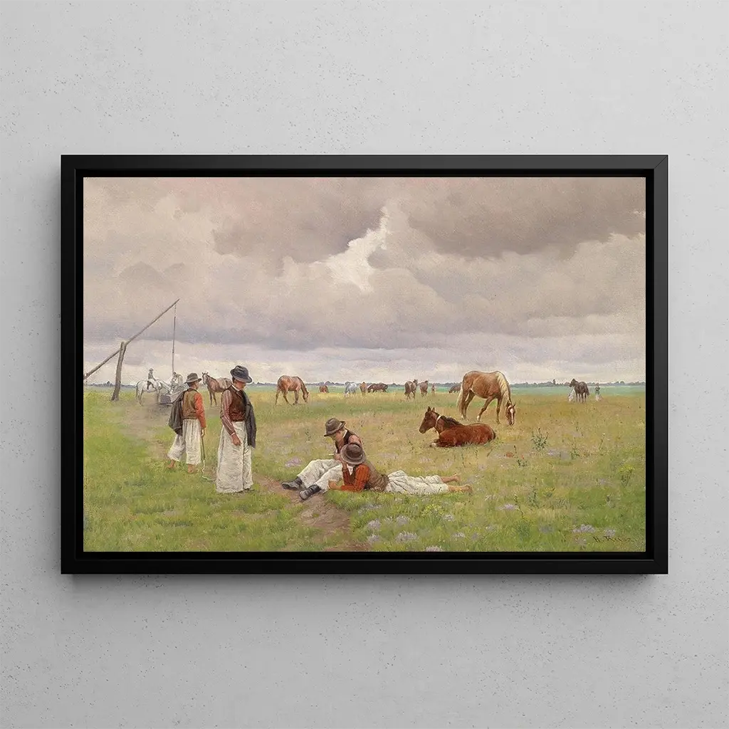 Hermann Reisz, maler af ungarsk oprindelse, er kendt for sine skildringer af det landlige liv og landskaber fra Puszta. Aktiv i det 19. århundrede, formåede han at fange essensen af naturen og traditionerne i sit land. Påvirket af romantikkens bevægelse udviklede Reisz en stil, der fremhævede skønheden i dagligdags scener, væk fra byens tumult. Hans værker, ofte præget af nostalgi, vidner om en tid, hvor naturen var i centrum for folks liv, hvilket gør ham til en vigtig kunstner for at forstå udviklingen af kunstnerisk landskabsmaleri i Europa.