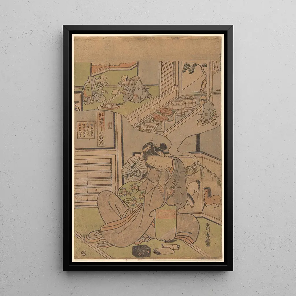 Ishikawa Toyonobu, aktiv i det 18. århundrede, er en af de mest ikoniske kunstnere inden for ukiyo-e, en kunstbevægelse der hylder den flygtige skønhed i den flydende verden. Influenceret af tidens store mestre, formåede Toyonobu at udvikle en unik stil, der kombinerer finesse og udtryksfuldhed. Hans værker, ofte centreret omkring dagliglivet og hoffets fornøjelser, vidner om en æra, hvor japansk kunst og kultur oplevede en hidtil uset vækst. Ved at genopdage "Rêve de jeunes geishas" kan man fornemme denne kunstners betydning i bevarelsen af en rig og mangfoldig kulturarv.