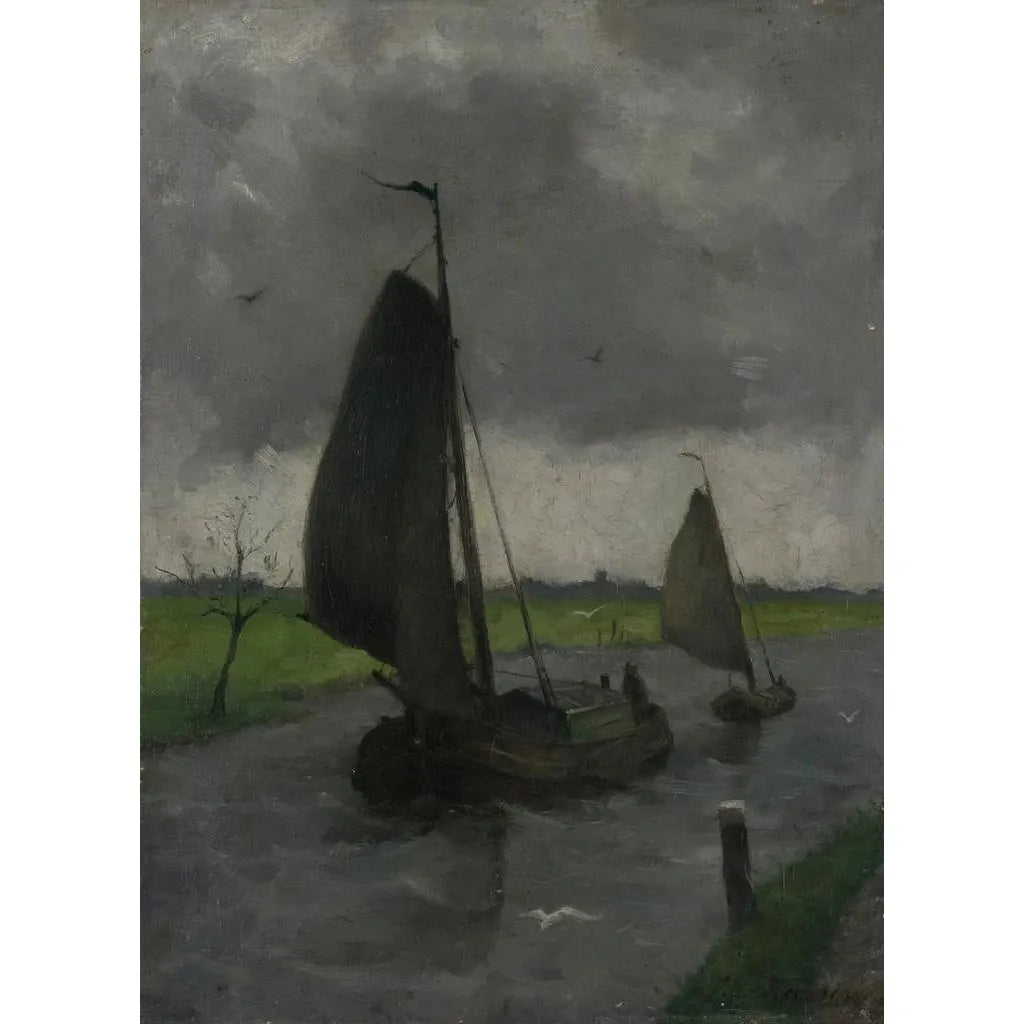 Kunsttryk | Vandløb med sejlende barjer - Eduard Karsen