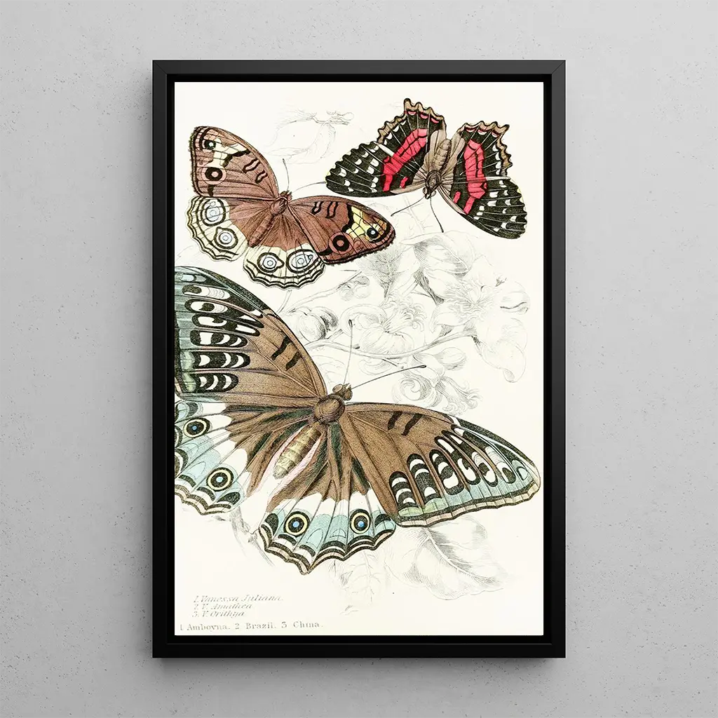 "Vanessa Juliana Vanessa Amathea Vanessa Orithya" er et fængslende kunsttryk, der fremhæver skønheden i sommerfugle. James Duncan, med sit enestående talent, formår at fange letheden og yndefaldet i disse flygtige væsener. De prangende farver på vingerne står i kontrast til en delikat baggrund, hvilket skaber en drømmeagtig atmosfære. Kunstnerens teknik, der blander realisme og impressionistiske strejf, giver liv til hver detalje og hylder naturens skrøbelige skønhed. Dette kunsttryk inviterer til stilfærdig eftertanke, hvor man næsten kan mærke vingernes banke.