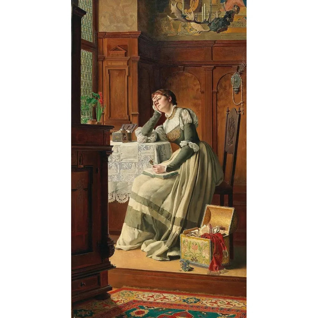 Denne kunsttryk af Carl Probst, "I begyndelsen ville jeg næsten give op", dykker seeren ned i en virvelvind af følelser. De mørke farver og nuancer af blå fremkalder en dyb melankoli, mens lysstrøgene skaber en slående kontrast, der symboliserer håbet, der opstår fra mørket. Probsts teknik, der kombinerer oliemaling og ekspressive penselstrøg, giver liv til en atmosfære, der er både intim og universel. Hvert detalje i dette lærred synes at fortælle en historie, den om en indre rejse, hvor kampen mod fortvivlelse forvandles til en søgen efter lys og sindsro.
