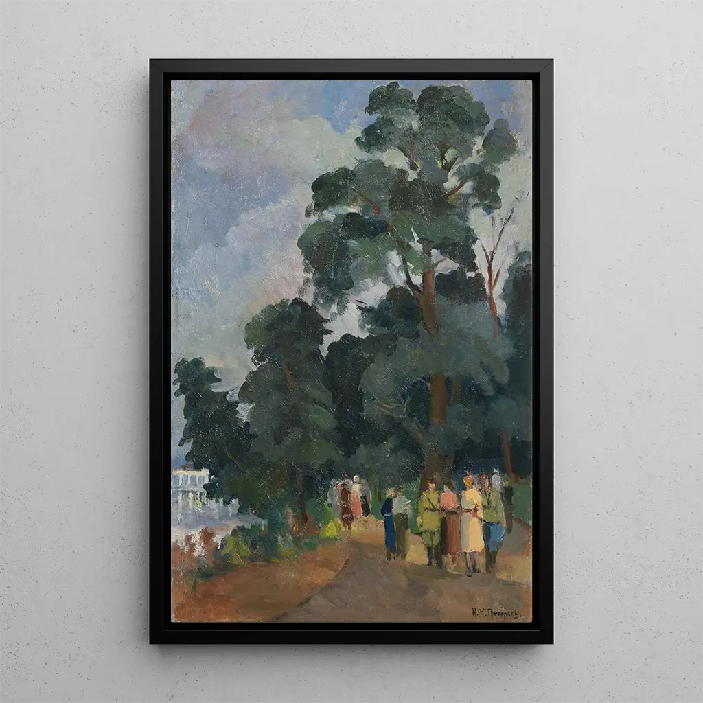 Nikolai Mikhailovich Grigoriev, aktiv i begyndelsen af det 20. århundrede, er kendt for sine landskaber, der fejrer den russiske natur. Påvirket af impressionismens bevægelse har han formået at fange lyset og atmosfæren i sine motiver med en unik følsomhed. Grigoriev blev uddannet ved St. Petersborgs Kunstakademi, hvor han udviklede sin karakteristiske stil. Hans værker er skabt i en periode, hvor kunstnere søgte at udtrykke følelser gennem naturen, hvilket gør ham til en vigtig figur i udviklingen af landskabsmaleri i Rusland. Hans malerier, som "Au bord de l'étang", vidner om denne søgen efter harmoni mellem mennesket og dets omgivelser.