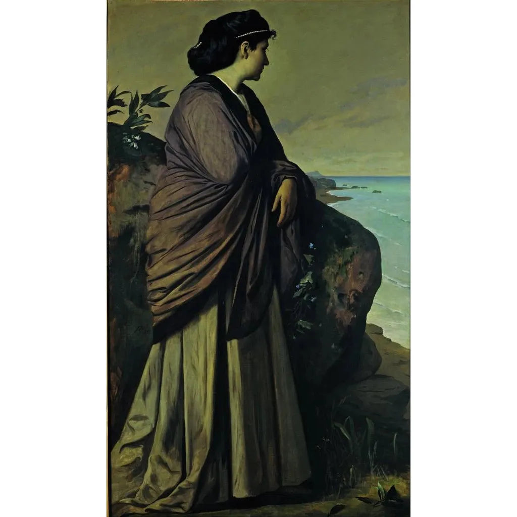 Anselm Feuerbach, tysk maler fra det 19. århundrede, er ofte forbundet med den romantiske bevægelse. Påvirket af de store mestre fra renæssancen og af mytologien, har han formået at skabe værker, der forener klassisk skønhed med dyb følelse. Hans karriere, præget af ophold i Italien, har givet ham mulighed for at udforske mytologiske og historiske temaer, hvilket har beriget hans stil med en narrativ dybde. "Au kant af havet" indskriver sig i denne søgen efter det ideelle, hvor naturen bliver et spejl af menneskelige følelser. Feuerbach har efterladt en varig arv, der inspirerer mange kunstnere gennem generationer.