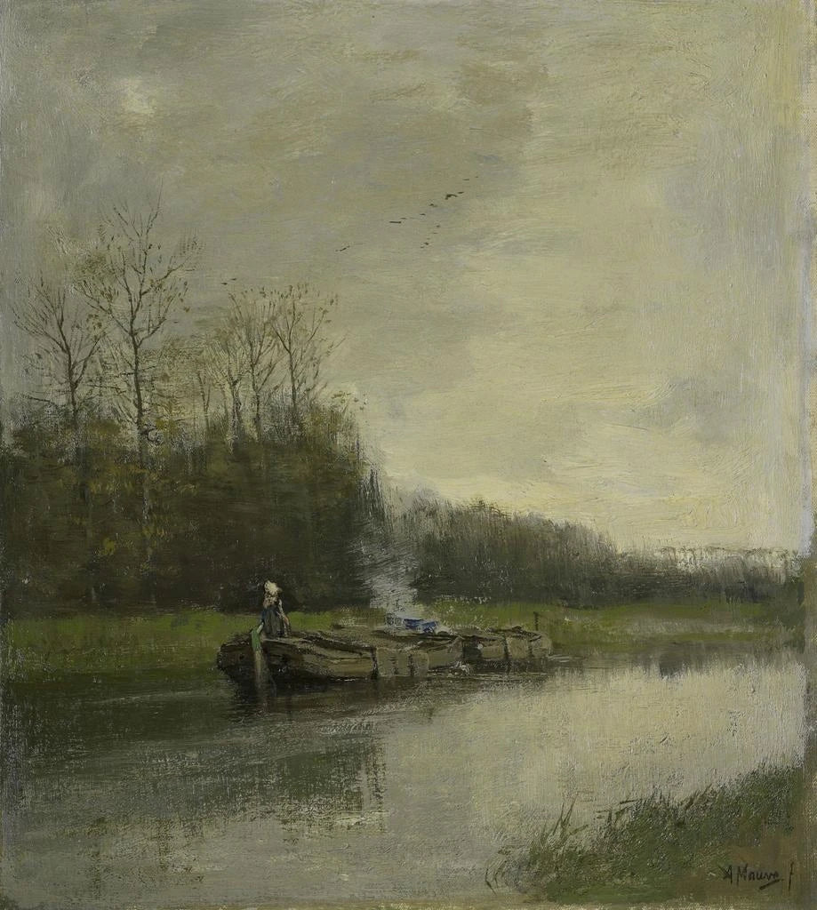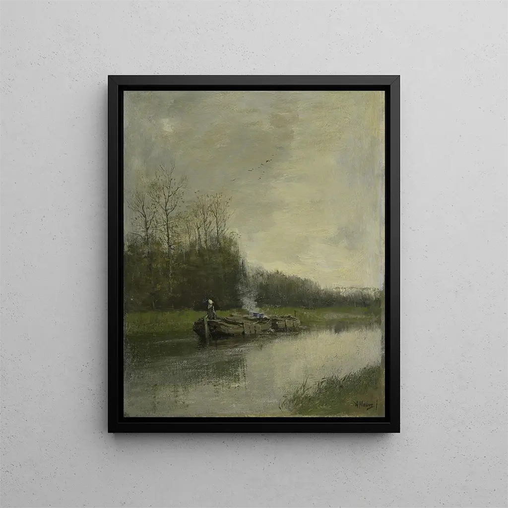 Reproduktion Chemin de halage - Anton Mauve – Introduktion fængslende I det rige og nuancerede univers af hollandsk kunst fra det 19. århundrede skiller værket "Chemin de halage" af Anton Mauve sig ud ved sin evne til at fange essensen af et flygtigt øjeblik. Dette maleri, præget af poesi og melankoli, transporterer os til hjertet af et landligt landskab, hvor naturen og mennesket eksisterer i en skrøbelig harmoni. Mauve, som mester i lys og skygge, inviterer os til at betragte en scene fra dagligdagen, hvor menneskets arbejde blandes med skønheden i de naturlige elementer. Kunsttrykket Chemin de halage - Anton Mauve giver således mulighed for at genopleve denne æstetiske oplevelse, samtidig med at det tilbyder et introspektivt blik på samspillet mellem mennesket og dets omgivelser. Stil og særpræg ved værket Anton Mauves stil karakteriseres ved en palette af bløde og jordnære farver, der fremkalder landskaberne i Holland. I "Chemin de halage" flettes nuancer af grøn, blå og brun sammen for at skabe en atmosfære, der både er rolig og livlig. Kompositionen af værket, hvor de menneskelige figurer er integreret omhyggeligt i det naturlige landskab, vidner om en dyb forståelse af rum og perspektiv. Mauve excellerer i gengivelsen af teksturer, hvad enten det er bevægelsen af vandet eller ujævnheden i jorden, hvilket giver en fuldstændig fordybelse i denne halage-scene. De minutøse detaljer, såsom refleksioner på vandet eller lysets spil på ansigterne af figurerne, afslører en kunstnerisk følsomhed, der overskrider det simple realisme. Mauve formår at forvandle en banal scene til et kunstværk med stor følelsesmæssig dybde, og inviterer betragteren til at føle roen i et øjeblik, der er suspendet i tiden. Kunstneren og hans indflydelse Anton Mauve, en ikonisk figur i Den Haag-skolen, formåede at præge sin æra med sin innovative tilgang til maleriet. Elev af den berømte maler Anton Mauve, udviklede han en unik stil, der blandede impressionistiske påvirkninger med hollandske traditioner. Hans arbejde har ikke blot bidraget til udviklingen af hollandsk kunst, men har også inspireret mange samtidige og fremtidige kunstnere. Mauve formåede at fange sjælen af folket