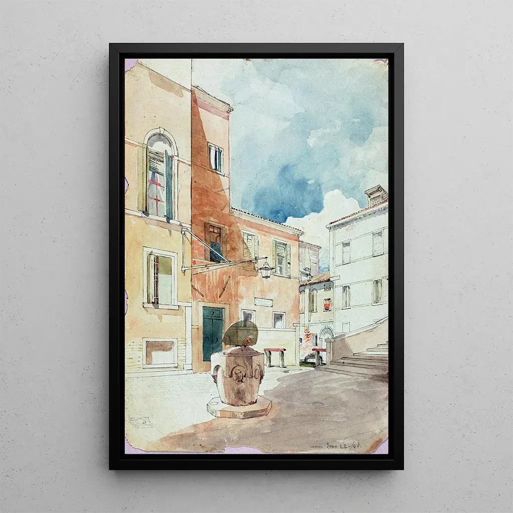 Kunsttrykket af Venise af Miner Kilbourne Kellogg fremkalder en fortryllende atmosfære, hvor refleksionerne af bygningerne på vandet skaber en dans af farver. De bløde nuancer af blå og rosa blander sig harmonisk, mens de arkitektoniske detaljer i de venetianske paladser træder frem med finesse. Akvarelteknikken, anvendt af Kellogg, giver værket en lethed og en flydende kvalitet, der minder om gondolernes bevægelser på kanalerne. Dette lærred inviterer til en fredelig eftertanke og transporterer betragteren til hjertet af den Serenissime, hvor hvert gadehjørne synes at fortælle en historie.