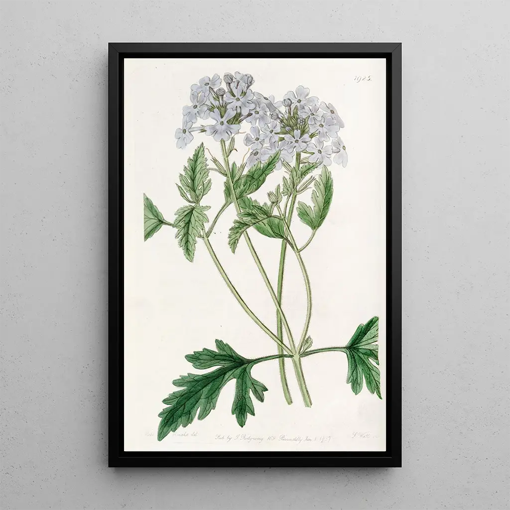 "Verveine lilas doux" af Sydenham Edwards er et værk, der fremkalder lethed og ynde i planter. Lærredet skiller sig ud med sine delikate lilafarvede nuancer, der harmonerer smukt med bløde grønne toner. Den omhyggelige gengivelse af blade og blomster, udført med en raffineret graveringsteknik, skaber en blid og beroligende atmosfære. Hvert detalje er omhyggeligt fremhævet, hvilket giver betragteren mulighed for at føle naturens flygtige skønhed. Dette værk inviterer til eftertanke og flugt, som en frisk brise i en ofte rastløs verden.