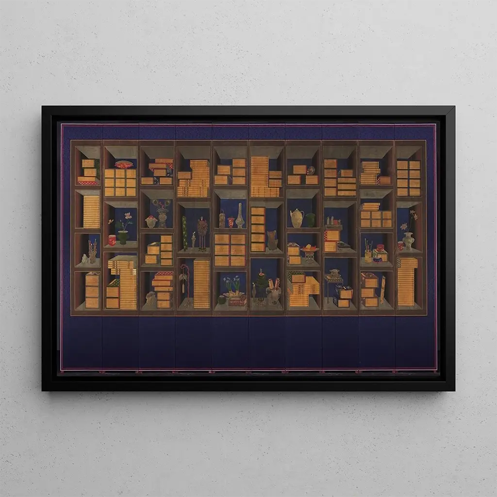 I dette fascinerende værk dykker Yi Taekgyun ned i en verden, hvor bøger og vidensinstrumenter flettes sammen. Den rigt detaljerede komposition fremhæver en række objekter, hver med dyb mening og historie. De bløde farver og delikate nuancer skaber en studerende og inspirerende atmosfære, der inviterer til refleksion. Yi's teknik, der kombinerer realisme og impressionistiske strejf, giver liv til hvert element og hylder jagten på viden samt kulturens betydning i vores samfund.