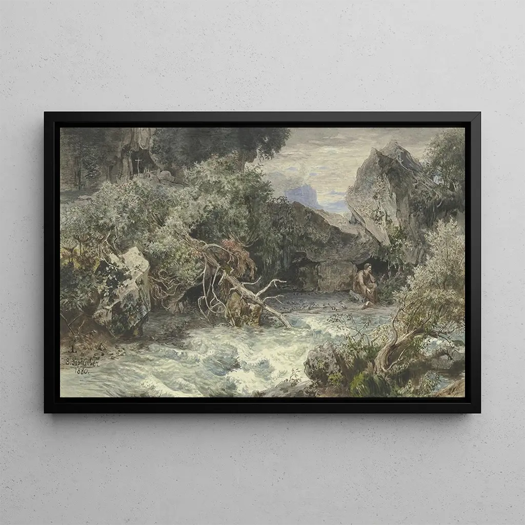 Kunsttryk Ruisseau sauvage avec ermite : en harmoni mellem natur og ensomhed