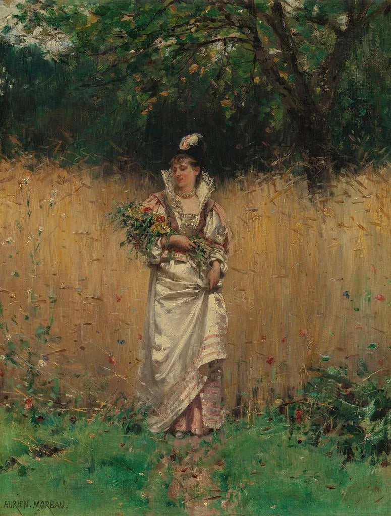 At vælge et kunsttryk af "Cueillette de fleurs sauvages - Adrien Moreau" er at vælge et vægdekorationstykke, der transcenderer det enkle ornament. Dette værk