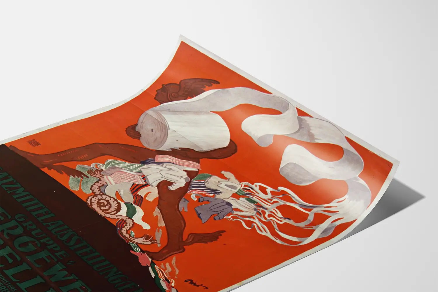 Vintage plakat erstatningsmiddel udstilling papirgewebe 1918