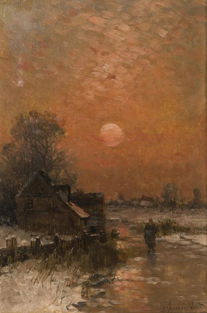 Johann Jungblut, maler fra det 19. århundrede, er ofte forbundet med den romantiske bevægelse, der hylder naturen og følelserne. Hans værk, præget af en særlig opmærksomhed på detaljer og lysvariationer, afspejler en dyb beundring for naturlige landskaber. Påvirket af tidens store mestre har Jungblut formået at udvikle en unik stil, der kombinerer realisme og poesi. "Hiver" er et perfekt eksempel på hans talent og illustrerer den flygtige skønhed i sæsonbestemte landskaber og naturens vigtighed i hans arbejde.