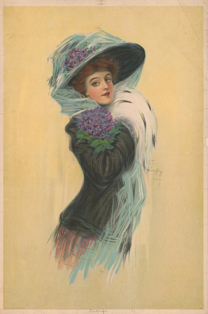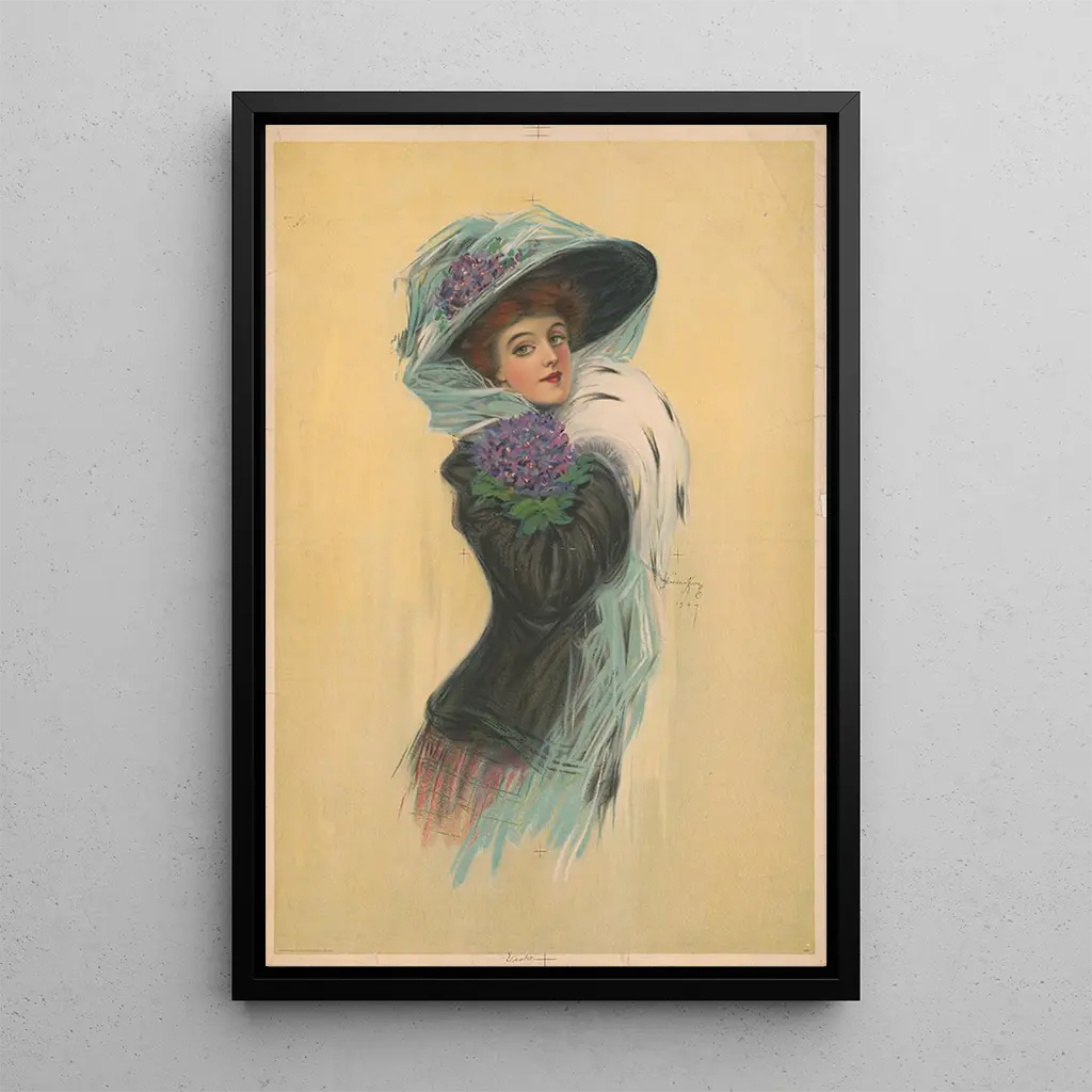 Hamilton King, aktiv i begyndelsen af det 20. århundrede, formåede at skille sig ud med sin unikke tilgang til portrætmaleri. Påvirket af Art Nouveau, kendetegnes hans stil ved organiske former og levende farver. King dedikerede sin karriere til at fange essensen af sine motiver, med særlig fokus på kvindelig skønhed. Hans værker har været bredt udstillet og værdsat, hvilket har bidraget til at udvikle det moderne portræt. "Violet" illustrerer perfekt hans talent og engagement i en kunstnerisk repræsentation, der forener tradition og modernitet, samtidig med at den fejrer kvindeligheden.