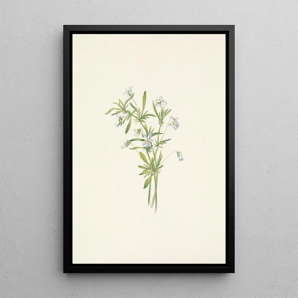 Violette des champs Viola rafinesquii : en delikat hyldest til naturen Den kunsttryk af Violette des champs, eller Viola rafinesquii, fører os ind i en blomsterverden præget af blidhed og ro. Nuancerne af lilla og hvid smelter harmonisk sammen og skaber et levende maleri, der fremkalder den flygtige skønhed af vilde blomster. Akvarelteknikken, anvendt af Mary Vaux Walcott, gør det muligt at fange letheden og gennemsigtigheden af blomsterbladene, samtidig med at den skaber en fredelig atmosfære. Hvert detalje, fra de fine blade til blomsterkonturerne, er gengivet med en præcision, der inviterer til forundring og eftertanke. Mary Vaux Walcott : en pioner inden for botanisk illustration Mary Vaux Walcott, aktiv i begyndelsen af det 20. århundrede, er kendt for sit enestående arbejde som botanisk illustratør. Påvirket af tidens kunstneriske bevægelser, formåede hun at forene videnskab og kunst for at skabe værker med stor præcision. Hendes kunstværker, herunder kunsttrykket af Violette des champs, vidner om en dyb respekt for naturen og en vilje til at øge offentlighedens bevidsthed om biodiversitet. Som medlem af American Botanical Society bidrog hun til fremskridt inden for videnskabelig kunst, hvilket har efterladt en varig arv inden for botanisk kunst. En dekorativ erhvervelse med mange fordele At vælge kunsttrykket af Violette des champs er et klogt valg for at forskønne dit hjem. Uanset om det er i stuen, på kontoret eller i soveværelset, tilføjer dette maleri et strejf af friskhed og farve. Dets trykkvalitet sikrer en trofast gengivelse af detaljerne i originalen, mens dets æstetiske appel gør det til et centralt element i din indretning. Ved at tilføje dette lærred til dit rum inviterer du naturen ind, hvilket skaber en beroligende og inspirerende atmosfære.
