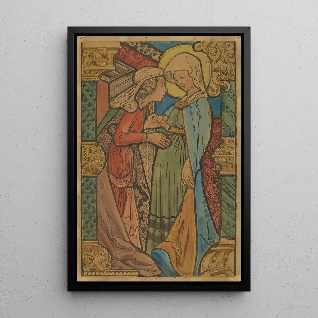 Kunsttrykket af "Visitation" af Stanisław Wyspiański skildrer et øjeblik fyldt med spiritualitet og følelser. Figurerne af Maria og Elisabeth, omgivet af blid og varm belysning, synes at betro sig til hinanden i en atmosfære præget af ømhed. Pastelfarver, blandet med mere livlige nuancer, skaber en harmonisk balance, mens den dynamiske komposition guider blikket gennem denne hellige scene. Wyspiański, med sit talent, formår at fange intimiteten i dette bibelske øjeblik, hvilket gør dette kunsttryk til en ægte invitation til refleksion over familiebånd og åndelige forbindelser.