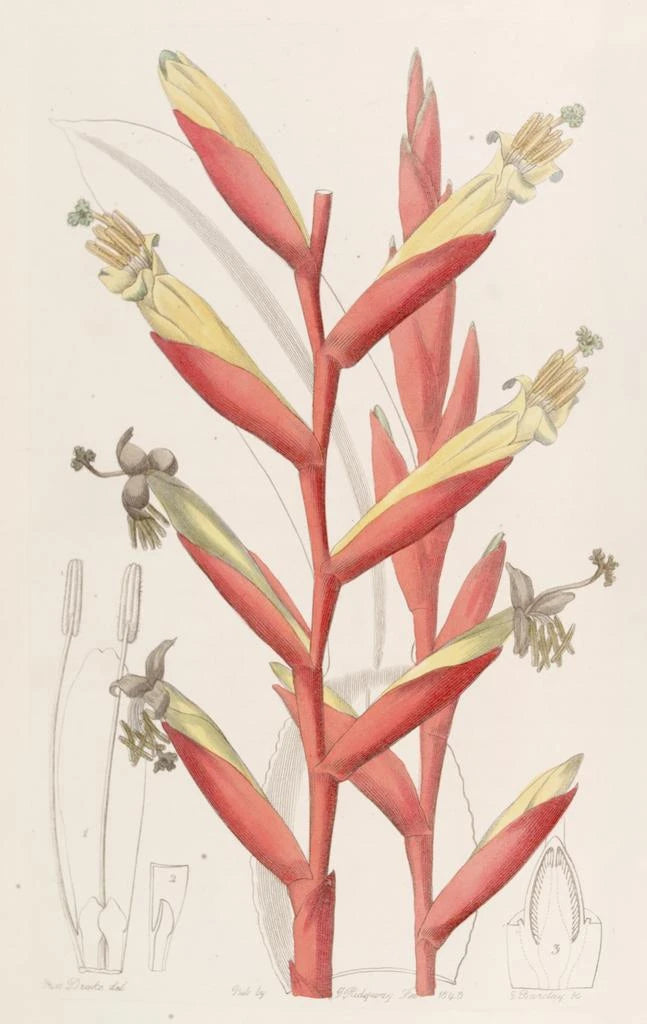 Maleri Vriesia med papegøje blomster - Sydenham Edwards