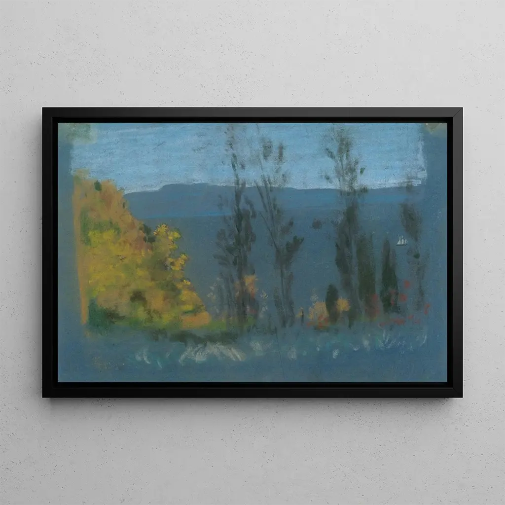 Kunsttrykket Vue gennem piletræerne af Arthur Bowen Davies fremkalder en fredelig scene, hvor naturen afsløres med finesse. Dette maleri, badet i lys, inviterer til en rolig betragning af landskaberne. Piletræerne, majestætiske og slanke, synes at danse under vindens hvisken, mens legene af skygge og lys skaber en næsten magisk atmosfære. Davies' impressionistiske teknik, med sine flydende penselstrøg, gør det muligt at mærke friskheden i luften og blidheden i farverne, hvilket transporterer betragteren til et suspendere øjeblik.