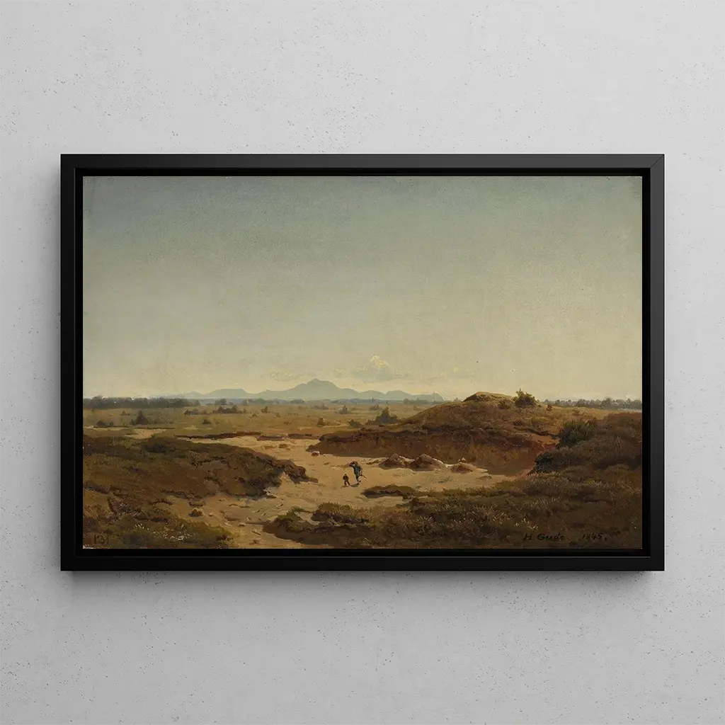 Kunsttrykket "Vue du Siebengebirge" af Hans Gude tager os med til hjertet af et majestætisk landskab, hvor bjergene står stolt under en azurhimmel. Nuancerne af grønt i de frodige skove kontrasterer med de bløde toner af bakkerne, hvilket skaber en rolig og beroligende atmosfære. Gudes teknik, kendetegnet ved delikate penselstrøg og omhyggelig opmærksomhed på detaljer, giver liv til denne scene og inviterer betragteren til at dykke ned i den naturlige skønhed. Refleksionerne af lyset på vandet tilføjer en næsten magisk dimension, hvilket gør dette kunsttryk fængslende og fuld af poesi.