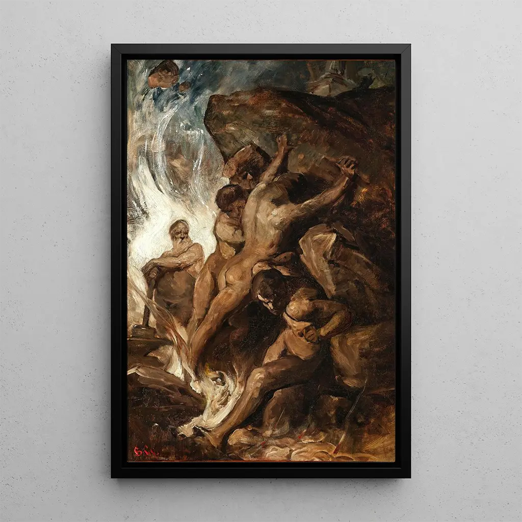 Gyula von Benczúr, ungarsk maler fra det 19. århundrede, er kendt for sine historiske og mytologiske kunstværker, der kombinerer realisme og romantik. Uddannet ved Wiens Kunstakademi, blev han påvirket af de store mestre i europæisk kunst, samtidig med at han integrerede elementer fra den ungarske kultur. Hans arbejde forbindes ofte med fremkomsten af kunstnerisk nationalisme i Ungarn, hvor han søgte at genopfinde den nationale identitet gennem kunsten. "Vulcain i sin smedje" er et emblematisk eksempel på hans stil, der dygtigt blander historie og mytologi for at skabe fængslende visuelle fortællinger.